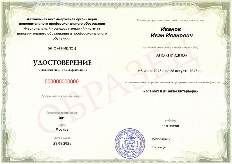 Учебный план программы повышения квалификации «3ds Max в дизайне интерьера»
