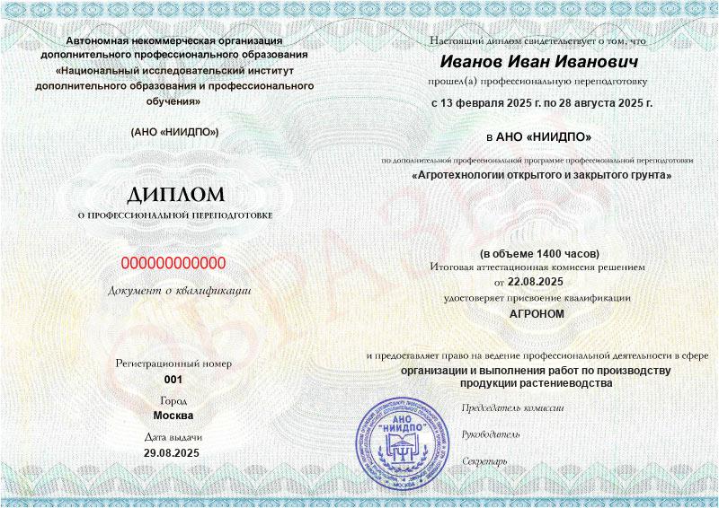 - Квалификация: Агроном