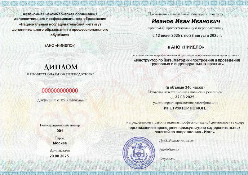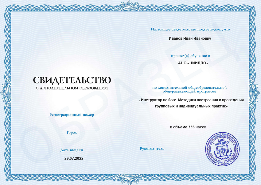 Инструктор по йоге. Методики построения и проведения групповых и индивидуальных практик (340ч)