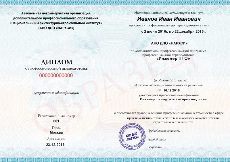Согласно закону, дипломы о профпереподготовке могут быть оформлены в порядке, установленном образовательным учреждением (пункт 19 Порядка организации и осуществления образовательной деятельности по ДПП). Образцы квалификационных документов размещены на сайте нашей образовательной организации.