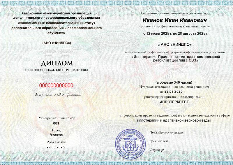 Обзор программы профессиональной переподготовки «Иппотерапия. Применение метода в комплексной реабилитации лиц с ОВЗ» с присвоением квалификации «Иппотерапевт»