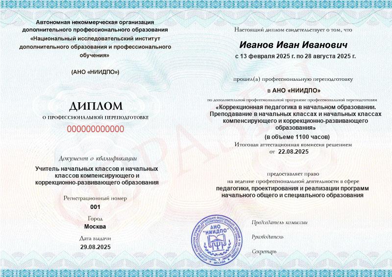 Да, документы оформляются на бланках с защитой от подделок, заполняются на русском языке, в них ставится печать АНО «НИИДПО».