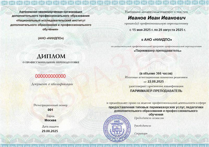 Да, документы оформляются на бланках с защитой от подделок, заполняются на русском языке, в них ставится печать АНО «НИИДПО».