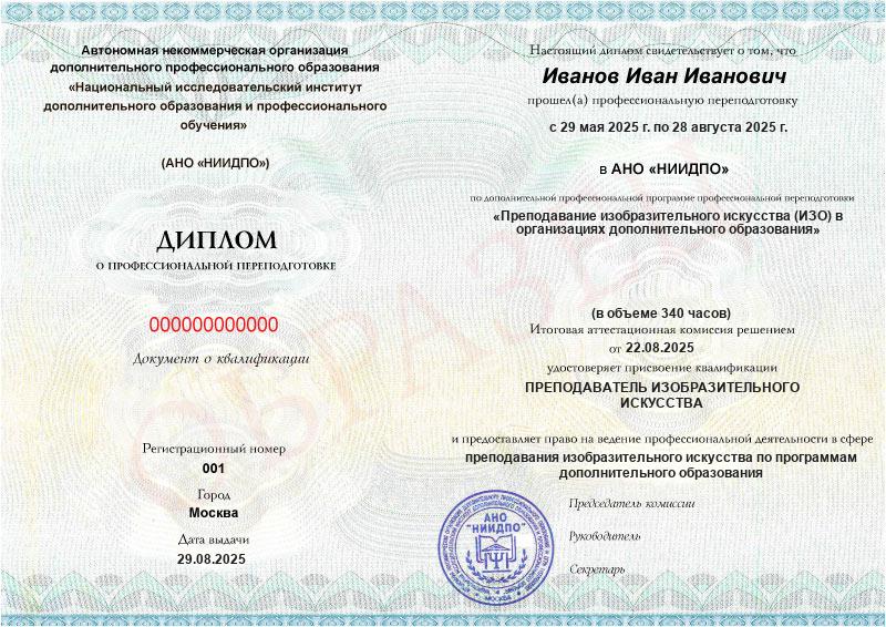 Обзор программы профессиональной переподготовки «Преподавание изобразительного искусства (ИЗО) в организациях дополнительного образования» с присвоением квалификации «Преподаватель изобразительного искусства»