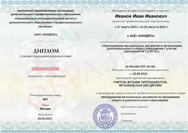 Обзор программы профессиональной переподготовки «Преподавание музыкальных дисциплин в организациях дополнительного и общего образования с учетом требований ФГТ и ФГОС» с присвоением квалификации «учитель музыки. Преподаватель музыкальных дисциплин»