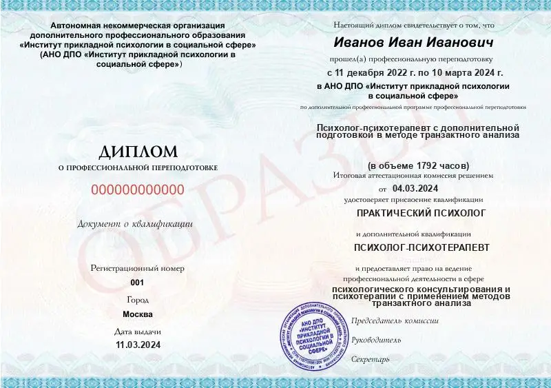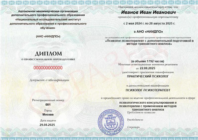 Психолог-психотерапевт с дополнительной подготовкой в методе транзактного анализа (1792ч)