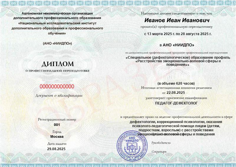 Специальное (дефектологическое) образование профиль «Расстройства эмоционально-волевой сферы и поведения» (620ч)