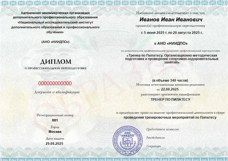 Тренер по Пилатесу. Организационно-методическая подготовка и проведение спортивно-оздоровительных занятий (340ч)