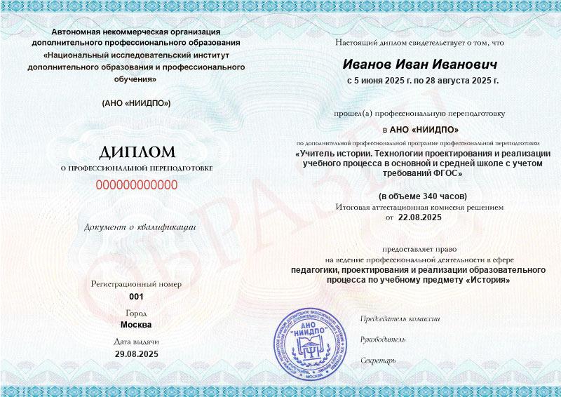 Диплом о профпереподготовке, если учились по программе свыше 250 ч.