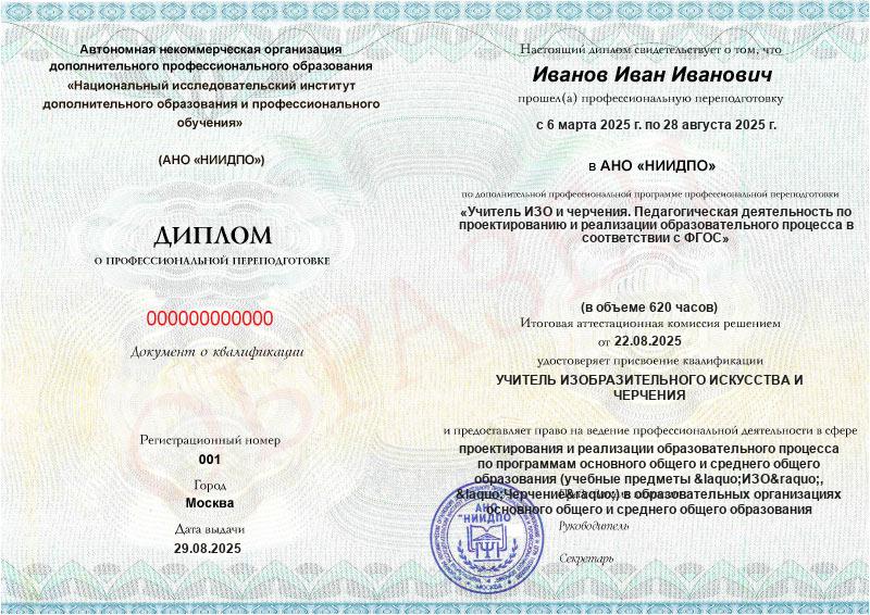 Да, документы оформляются на бланках с защитой от подделок, заполняются на русском языке, в них ставится печать АНО «НИИДПО».
