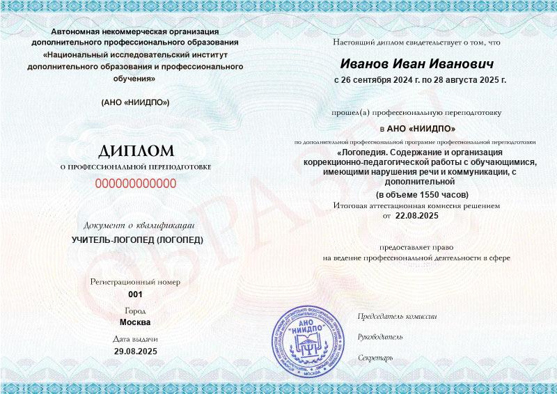 - 2 квалификации: УЧИТЕЛЬ-ЛОГОПЕД (ЛОГОПЕД) + УЧИТЕЛЬ-ДЕФЕКТОЛОГ