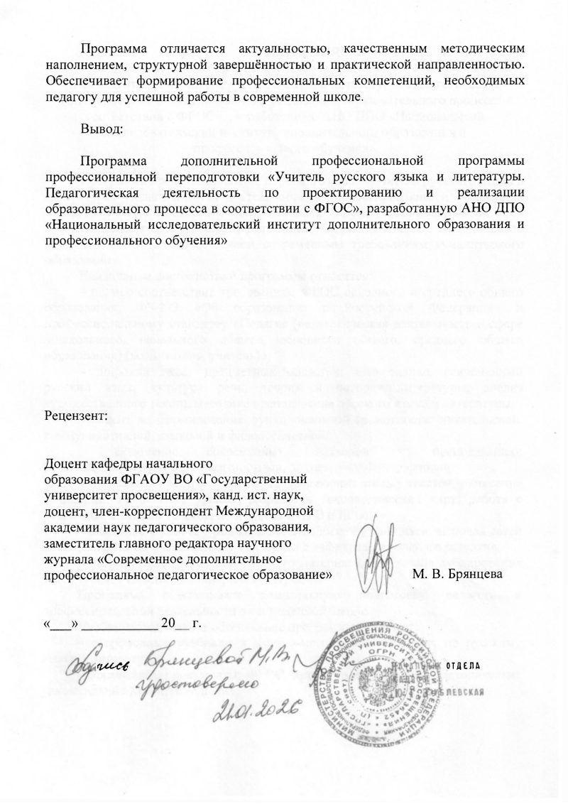 Читайте рецензию доцента кафедры начального образования ФГАОУ ВО «Государственный университет просвещения», члена-корреспондента Международной академии наук педагогического образования, кандидата исторических наук Брянцевой М. В.