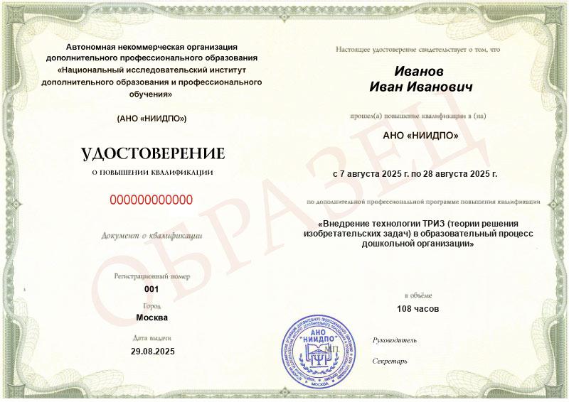 Пройдите курс по методикам ТРИЗ для педагогов дошкольного образования за 1 месяц и получите удостоверение о повышении квалификации и сертификат компетенций.